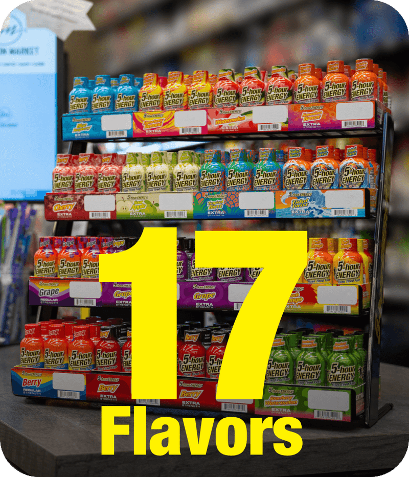 The 5-hour ENERGY® beverage is 16 carbonated ounces including all of the ingredients of the extra strength 5-hour ENERGY® shot for when you’re tired and thirsty.