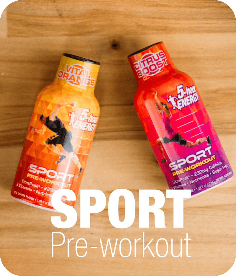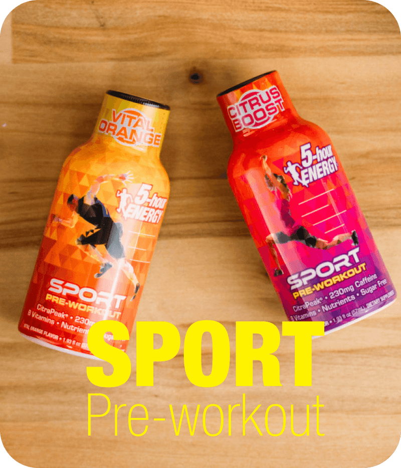 After lunch: Tired of that 2:30 FEELING®? You’re not alone. In fact, research shows that more than 70 percent of us hit the wall after lunch. Let a 5-hour ENERGY® shot help you leap over that wall instead of crashing into it. Before your workout: Want to get in shape but having trouble staying motivated? Make 5-hour ENERGY® shots part of your lifestyle and get the energy boost you need to get fit.